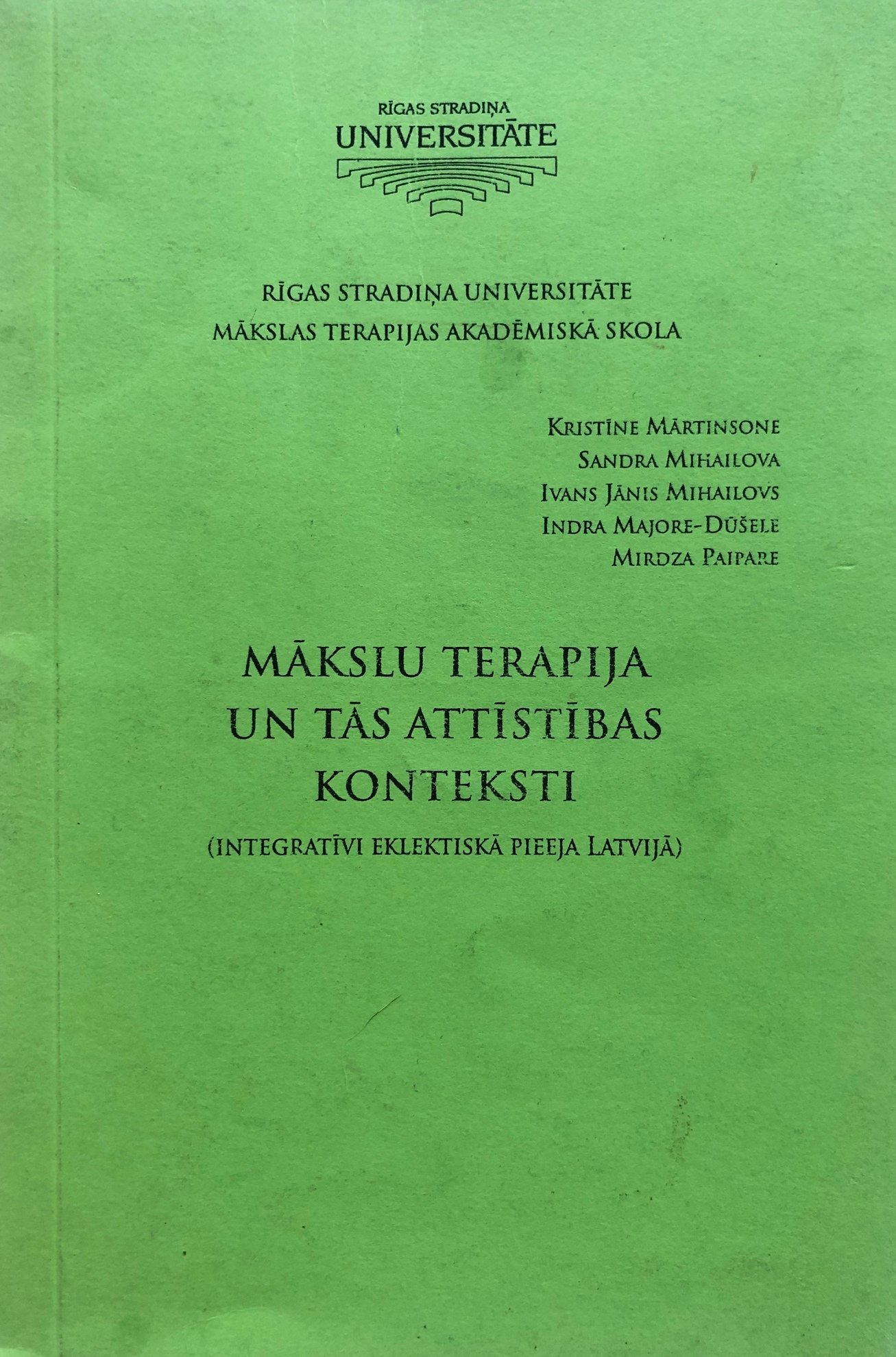 “Izvērtēšana Mākslas terapijā: principi un metodes”, E.Strazdiņa, Rīga: RSU, 2016